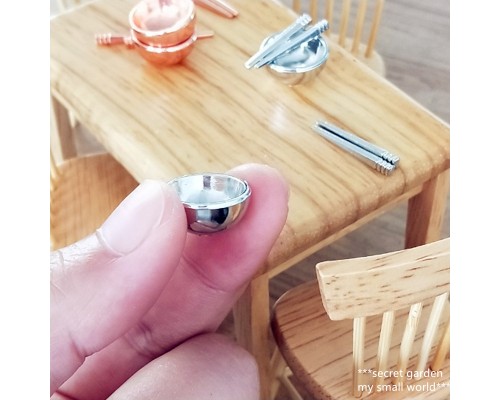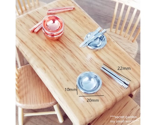 娃娃屋DIY小屋1:12迷你袖珍廚房餐具模型微型合金小碗筷子一套