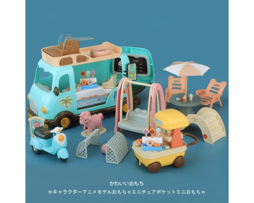 微縮娃娃屋過家家房車雪糕車摩托沙灘椅游樂園模型玩具場景小擺件