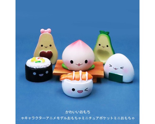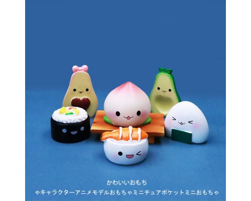 仿真過家家食玩果蔬食物牛油果壽司飯團仙桃表情小公仔小擺件玩具