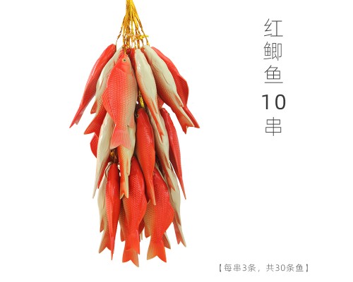 仿真鯽魚模型塑料淡水假魚掛串蔬菜水果食物玩具農家裝飾掛件道具