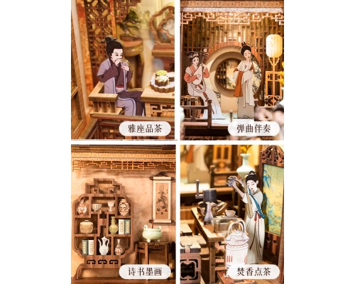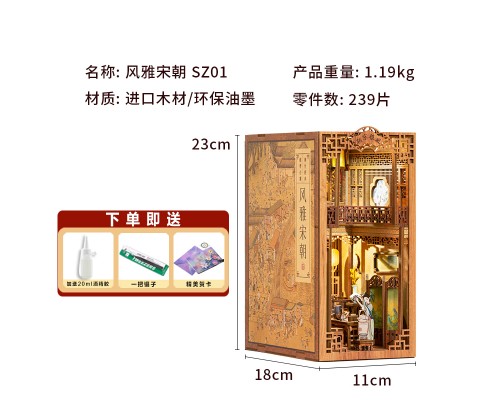 手工立體書風雅宋朝古風diy書立觸摸式開關木制拼裝模型節日禮物