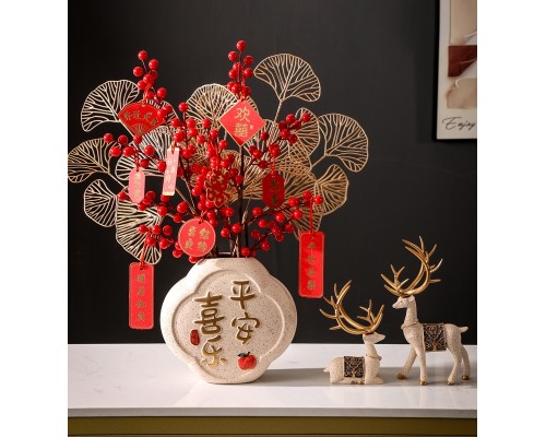 平安喜樂花瓶+紅果+如意對鹿 (NT1,644)