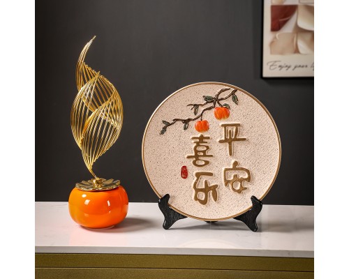 鐵藝柿子擺件+平安喜樂盤小 (NT1,139)