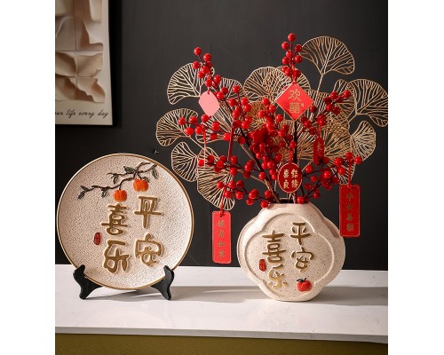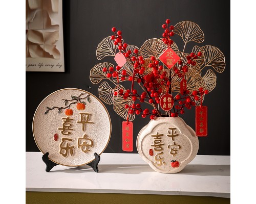 平安喜樂花瓶+紅果+喜樂盤小 (NT1,443)