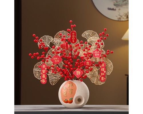 米色陶瓷柿事如意花瓶+銀杏紅果 (NT724)