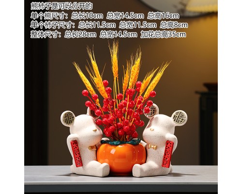 米色大吉大利福熊柿子花瓶+紅果麥穗 (NT1,044)