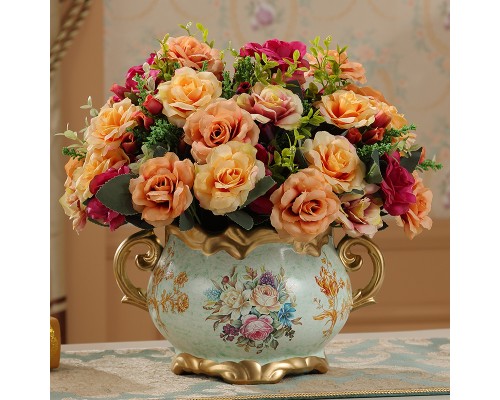 淺藍點好運來鹿拉平安喜樂花瓶+花 (NT924)