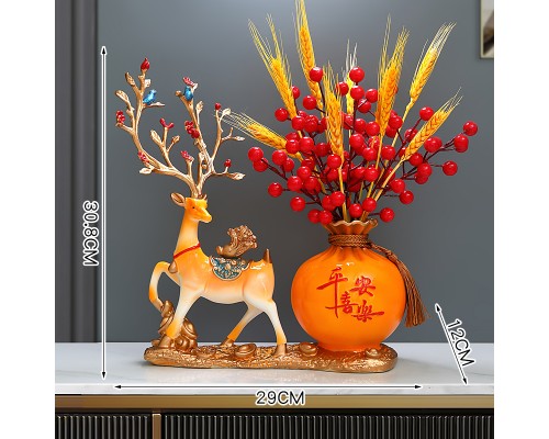 橙色好運來鹿拉平安喜樂花瓶+紅果 (NT924)