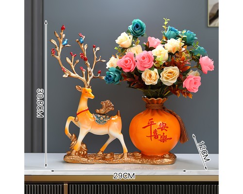 橙色好運來鹿拉平安喜樂花瓶+花 (NT924)