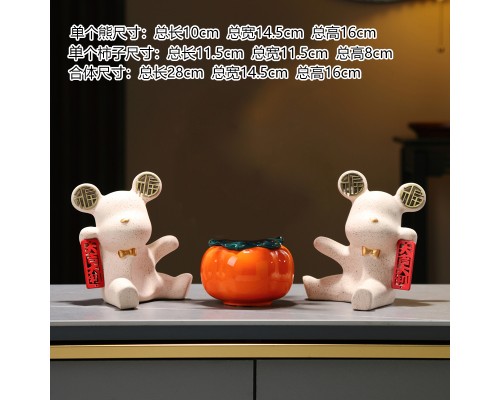 米色大吉大利福熊柿子花瓶 (NT884)