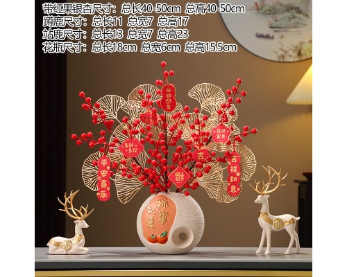 紅色點好運來鹿拉平安喜樂花瓶+紅果 (NT924)