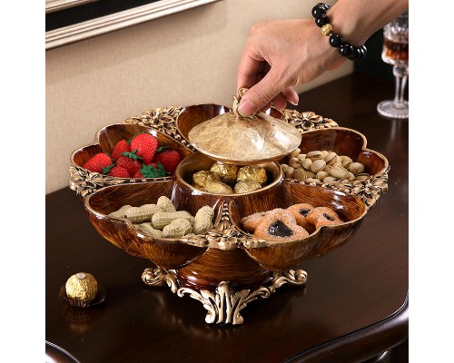 創意歐式干果盤客廳桌面分格帶蓋旋轉糖果盒喬遷禮物樣板房軟裝