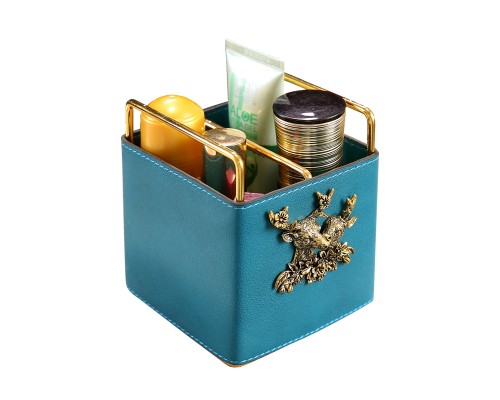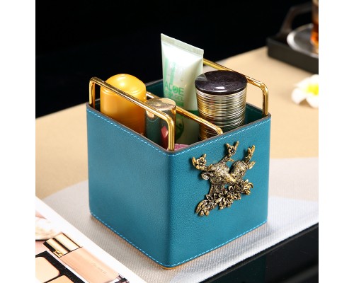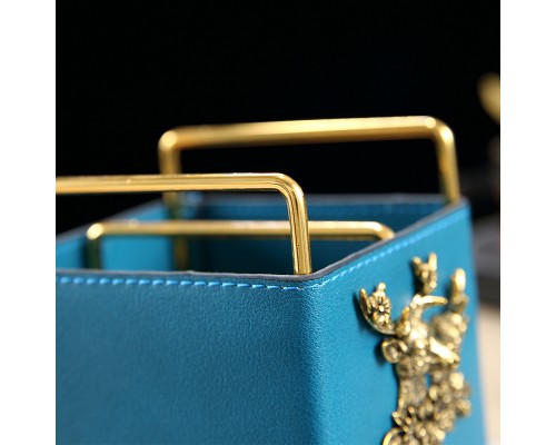 藍色皮革-鐵架方格收納筒