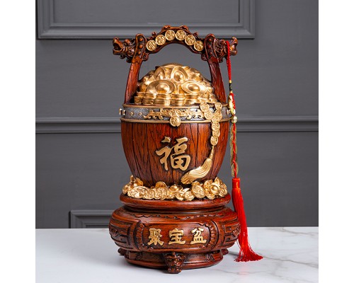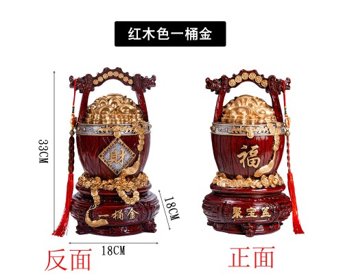 招財進寶一桶金存錢罐(紅木色)