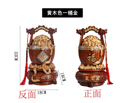 招財進寶一桶金存錢罐(黃木色)
