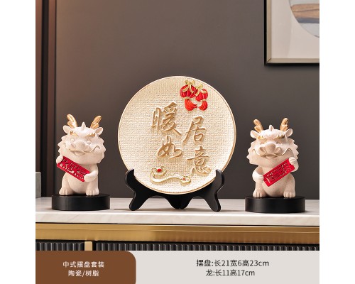 暖居如意裝飾盤+龍擺件一對 (NT1,413)