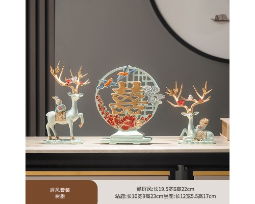 喜事連連裝飾盤+花色福鹿 (NT728)
