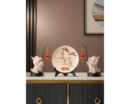 喜事連連裝飾盤+龍擺件一對 (NT1,251)