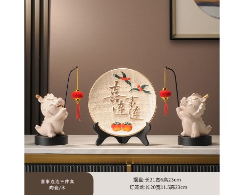 喜事連連裝飾盤+燈籠龍擺件一對 (NT1,251)