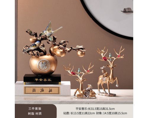 平安喜樂(金)+福祿發財鹿一對(金) (NT2,134)