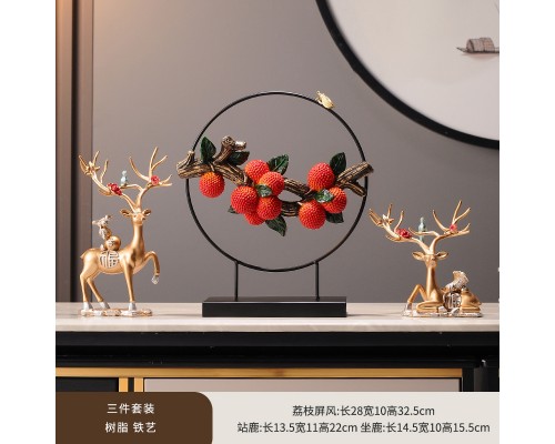 紅利當頭荔枝擺件+福祿發財鹿一對(金) (NT1,414)