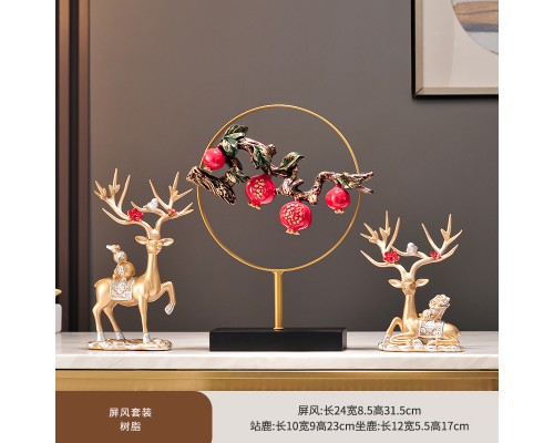多子多福擺件【紅】+福祿發財鹿一對(金) (NT1,324)