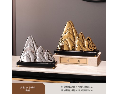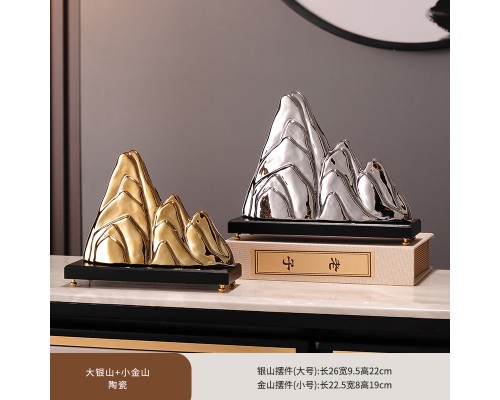 金山銀山招財擺件新中式辦公室客廳玄關電視柜酒柜高檔家居裝飾品