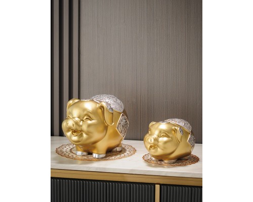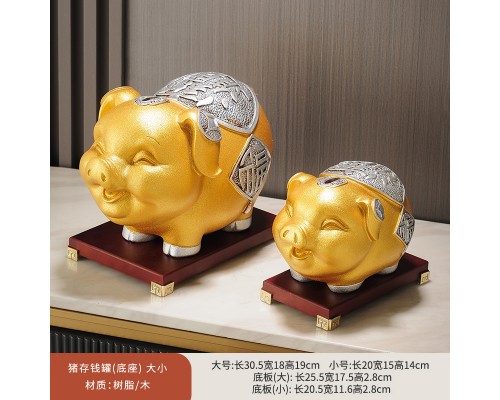 金色小號+大號豬存錢罐可取+底座 (NT2,584)