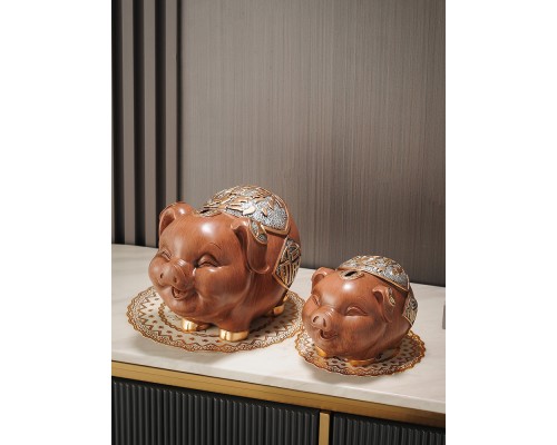 木色小號+大號豬存錢罐可取+底座 (NT2,584)