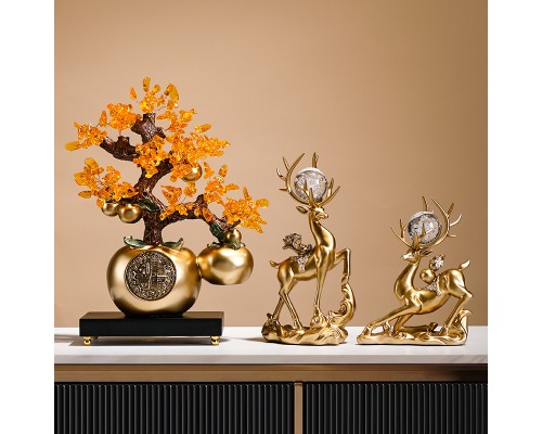柿子發財樹【金】+蓄勢高升-祥鹿【金色】 (NT2,933)