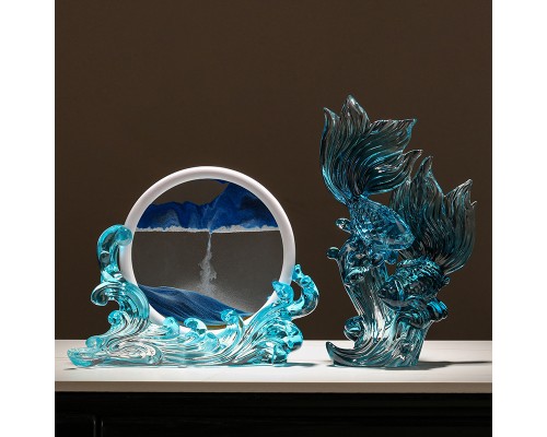 【漸變藍】海浪流沙畫+錦鯉戲水【漸變藍】 (NT2,746)
