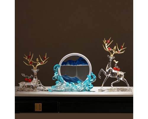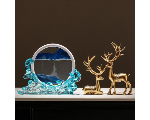 【漸變藍】浪流沙畫+人生如意鹿【透明】 (NT2,865)