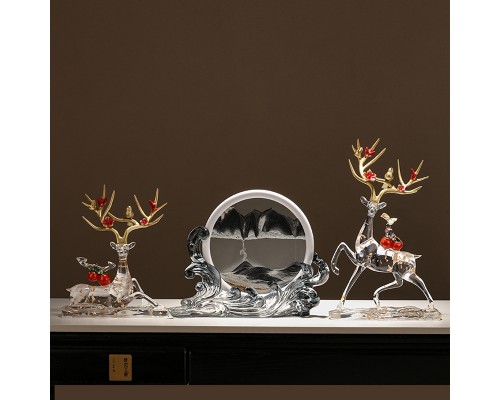 【漸變灰】海浪流沙畫+人生如意鹿【透明】 (NT2,865)