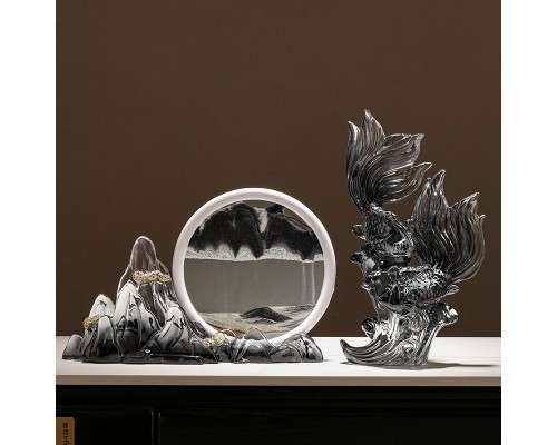 假山流沙畫【漸變灰】+錦鯉戲水【漸變黑】 (NT2,746)