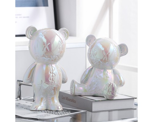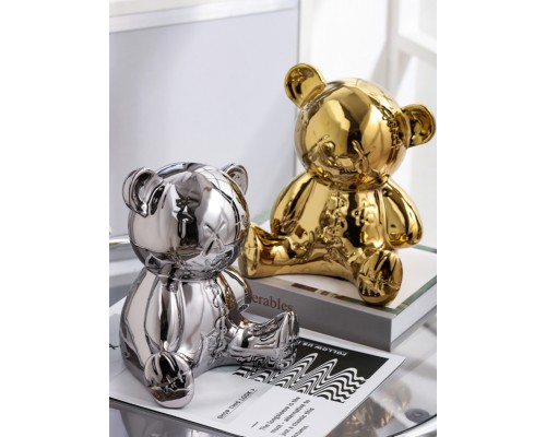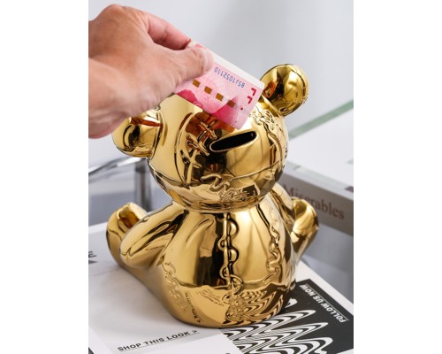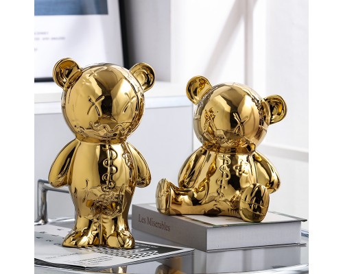 創意網紅補丁熊存錢罐電鍍陶瓷擺件客廳輕奢酒柜家居電視柜裝飾品