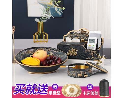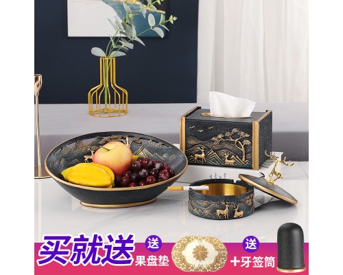 B款果盤-黑色單紙巾盒三件套 (NT3,240)