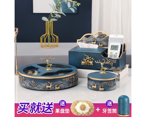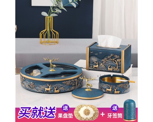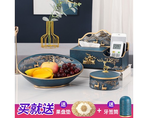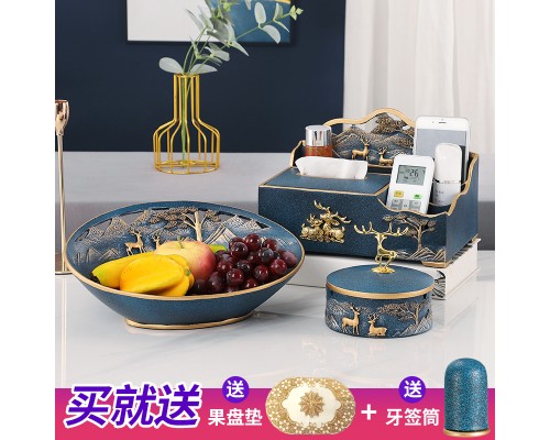 B款果盤-霧藍單紙巾盒三件套 (NT3,240)