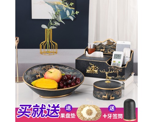 A款果盤-黑色單紙巾盒三件套 (NT2,840)