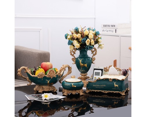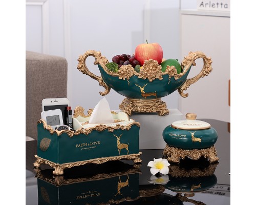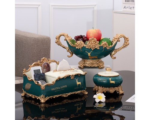 綠米單紙巾盒果盤三件套送牙簽盒 (NT2,280)