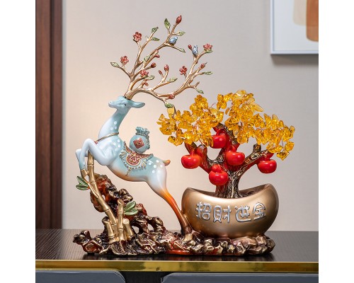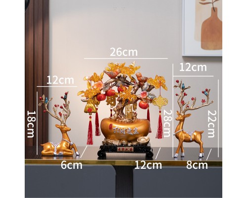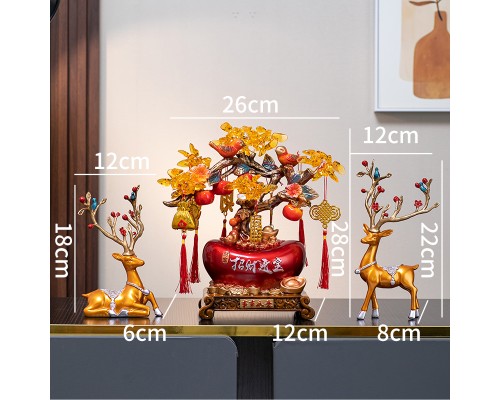 新中式發財鹿擺件客廳玄關辦公室前臺搖錢樹裝飾新居喬遷開業禮品