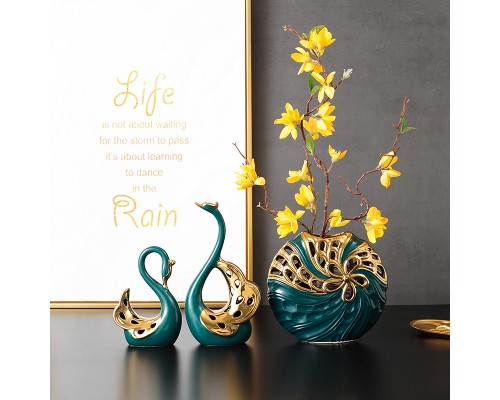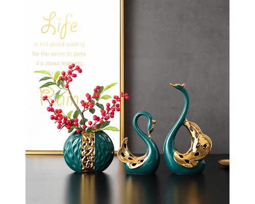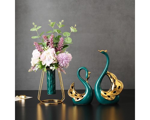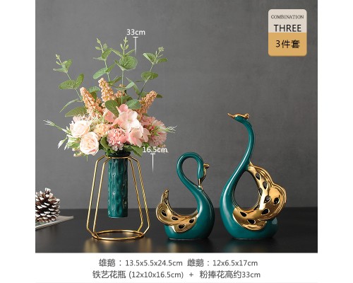 鐵藝·仙羽情侶天鵝·手捧花粉 墨綠 (NT1,011)