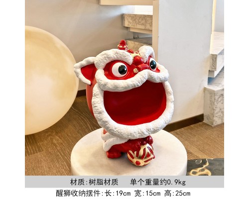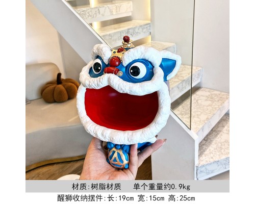 入戶玄關放鑰匙收納醒獅擺件客廳盒家居飾品舞獅國潮開業喬遷禮物