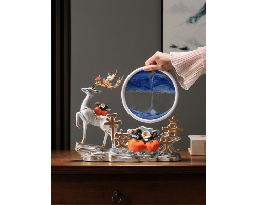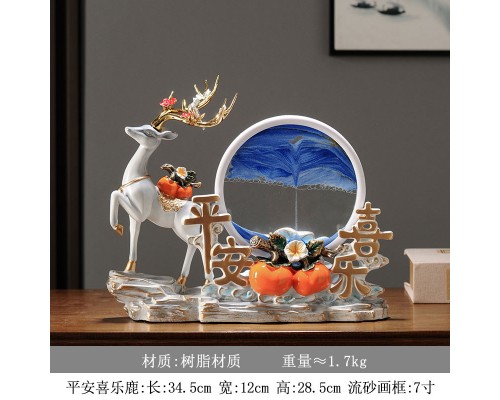 新中式鹿擺設流沙畫擺件禪意玄關辦公室茶室平安喜樂裝飾沙漏解壓