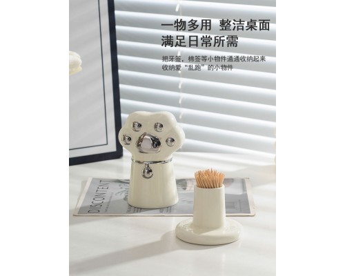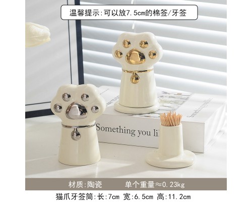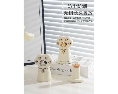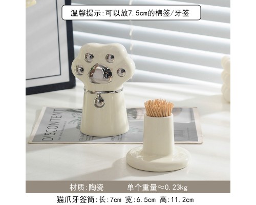 可愛牙簽盒家用個性創意貓爪裝飾品輕奢牙簽筒牙線棉簽收納儲物罐