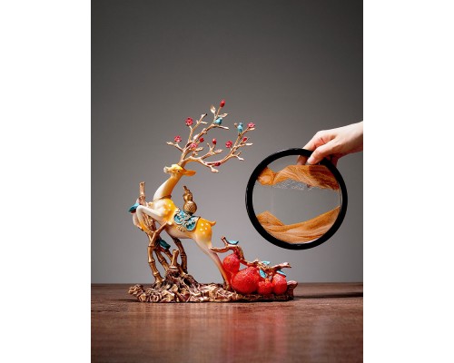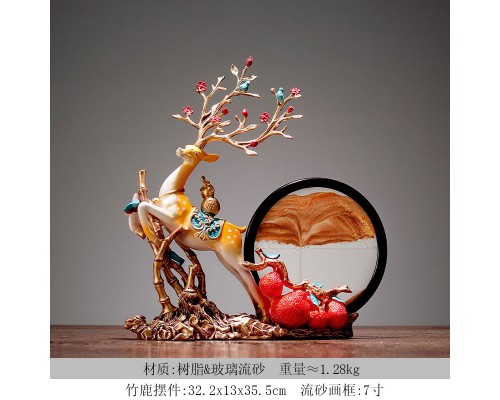 創意流沙畫中式鹿擺件輕奢酒柜裝飾客廳辦公桌面家居喬遷新居禮品