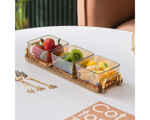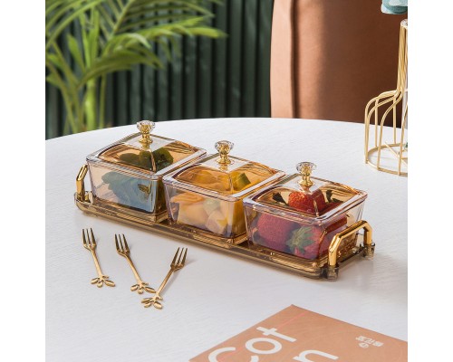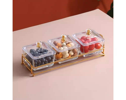 套三玻璃果碟【帶蓋】+金架(透明) (NT460)