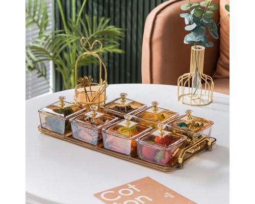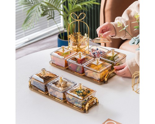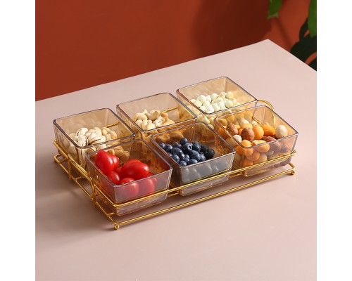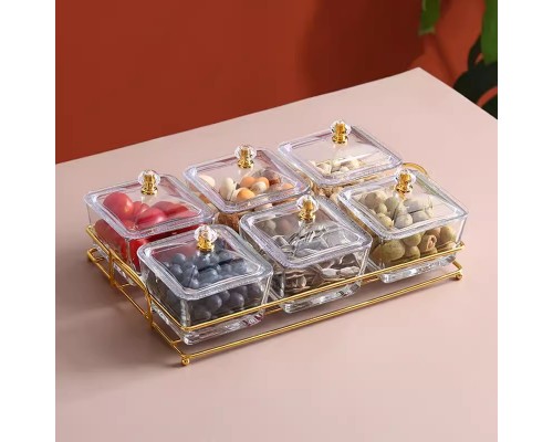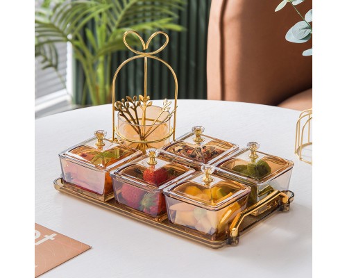 套六玻璃果碟【帶蓋】+金架(透明) (NT726)