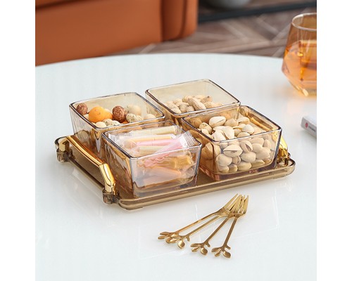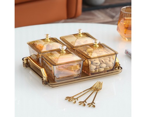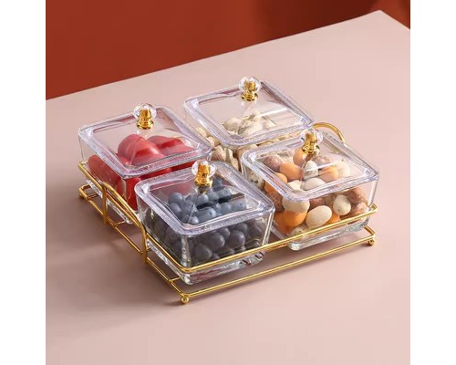 套四玻璃果碟【帶蓋】+金架(透明) (NT555)