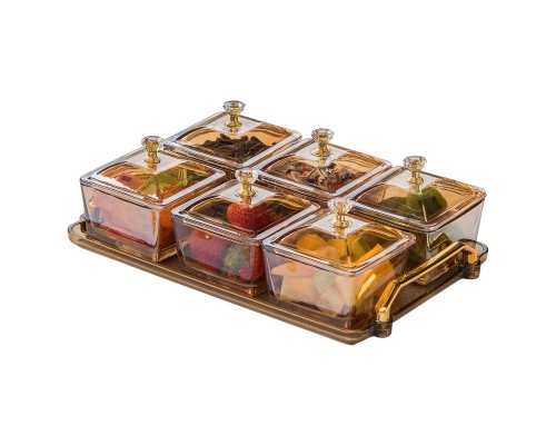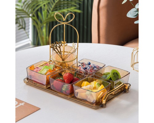 套五 琥珀果碟【帶蓋】心架5叉 (NT1,002)