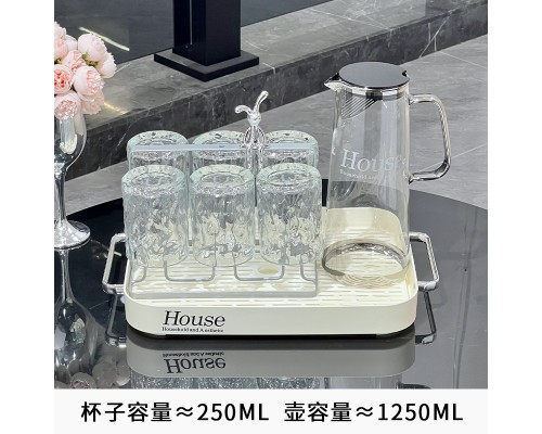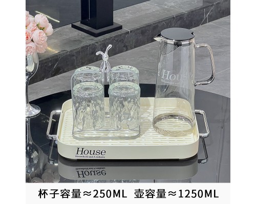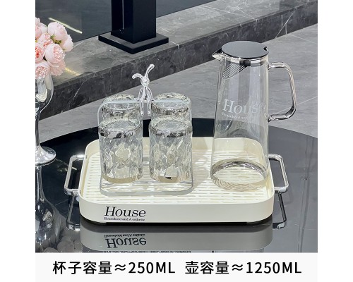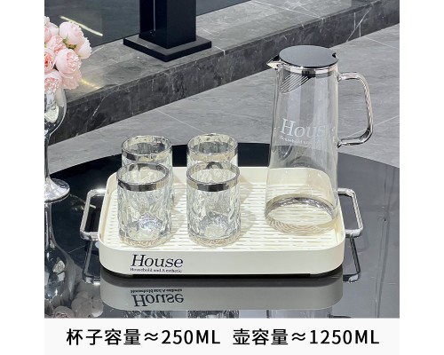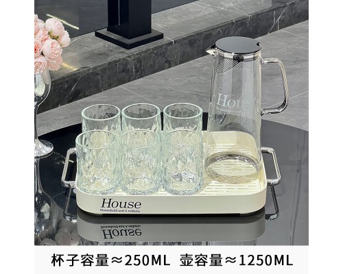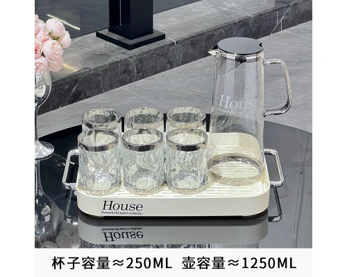 輕奢冷水壺玻璃水壺家用耐高溫大容量涼水壺水杯套裝茶壺喬遷禮盒